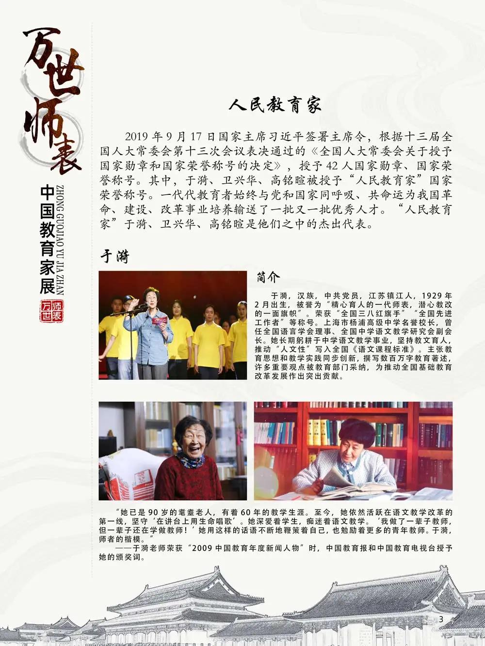 中国教育事业发展史上名师辈出,从古代的孔丘、墨翟、孟轲、荀况、王充、韩愈、朱熹等,到现代的蔡元培、徐特立、陶行知、于漪、卫兴华、高铭暄等都是其中的佼佼者,他们是万世师表,他们对文化和思想的传播起到了至关重要的作用。尤其是中国近代风云变幻,正是因为一批批教育者的不懈努力,为中国的革命事业和新中国建设培养了众多人才,才使得中国一步步走向走向独立,走向富强。